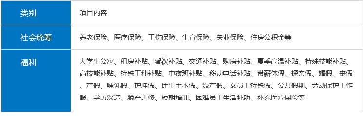 公司在按國(guó)家規(guī)定為員工繳納社會(huì)保險(xiǎn)(養(yǎng)老、醫(yī)療、生育、工傷、失業(yè))和住房公積金的同時(shí),為員工提供了多種多樣的福利項(xiàng)目。